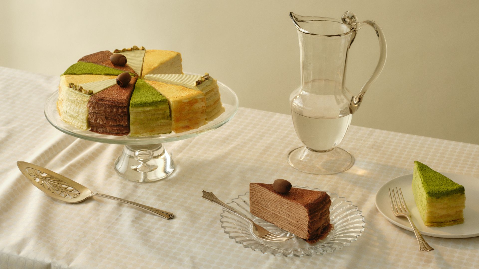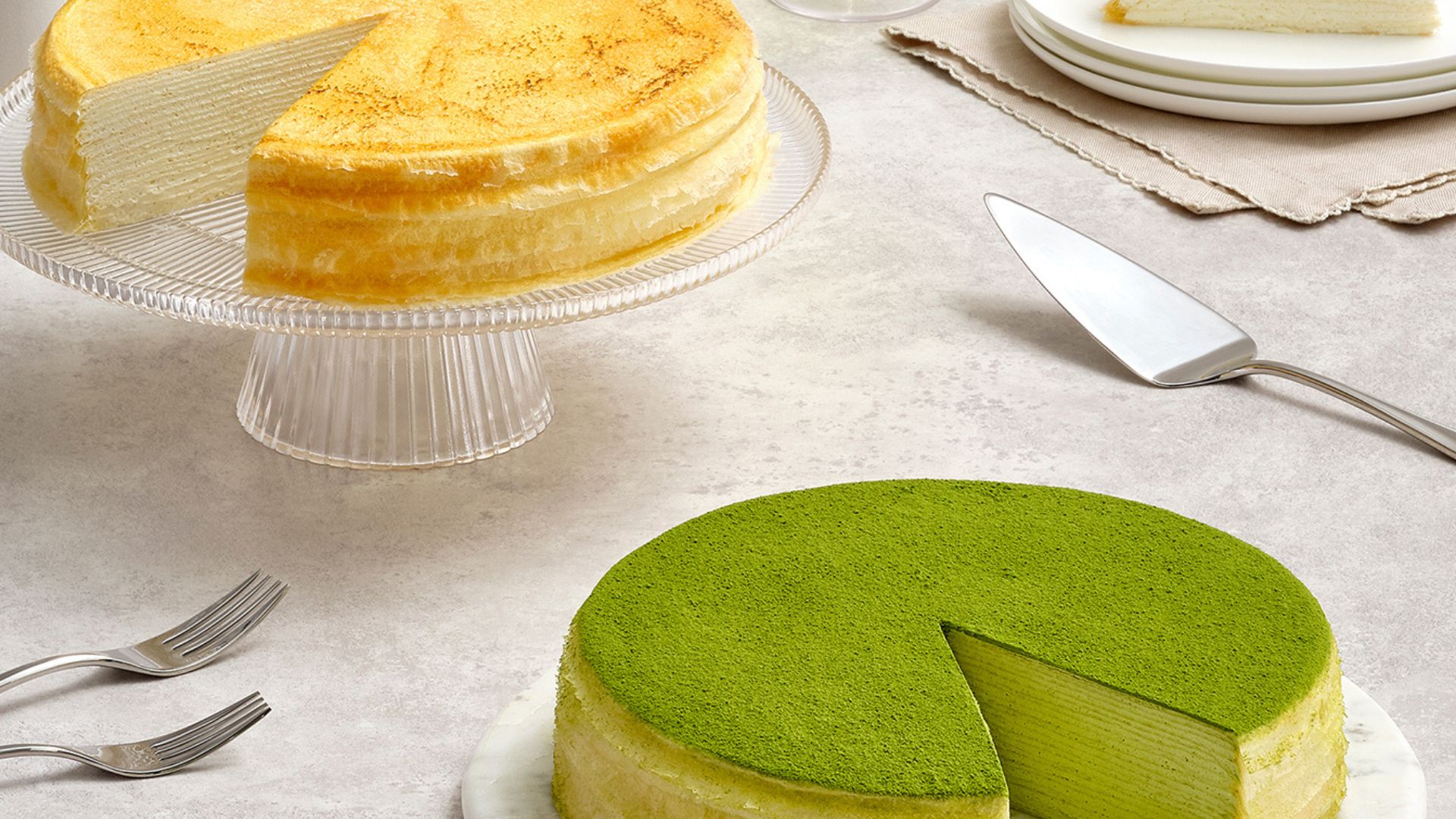 Four flavors, countless smiles. The easiest decision your host will make all day. Featuring slices of Signature, Green Tea, Chocolate and Pistachio Mille Crêpes, this collection offers something for everyone.